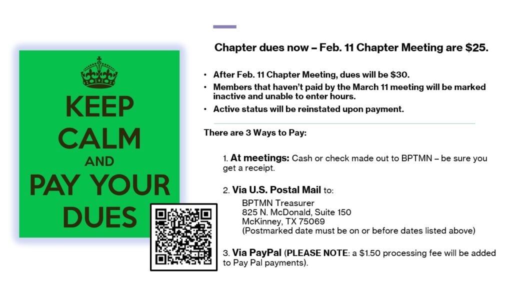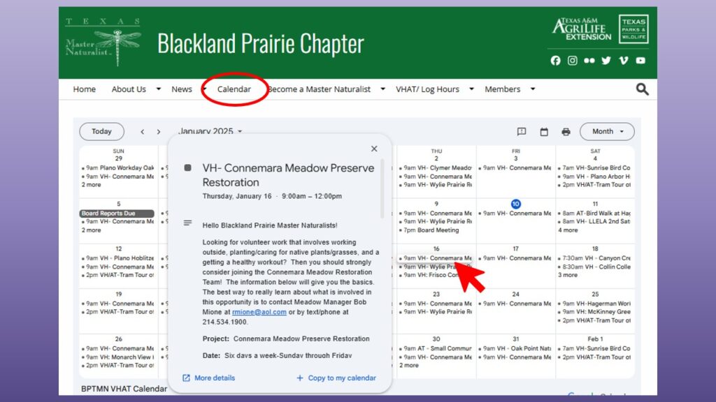 You can access our latest newsletter from our Chapter’s Home Page at bptmn.org, click on the “Blackland Prairie Newsletter” image OR by direct link – https://txmn.org/bptmn/newsletters/