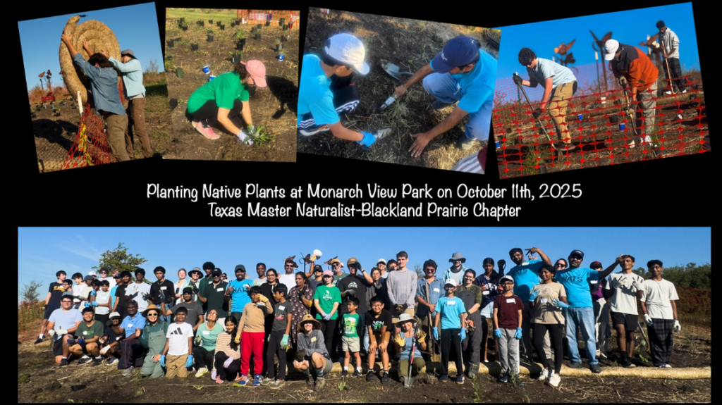 Over the past year, Monarch View Park has seen an incredible transformation. With two grants from HEB, generous donations of plants and seeds from our amazing Blackland Prairie Master Naturalist members, contributions from other supporting organizations, and prairie rescues, we have added roughly 4,000 plants. Including Phase 1, that brings the total to 5,000! So far, we’ve planted in 22,700 sq. ft. of the hill’s 46,500 sq. ft. planting area.