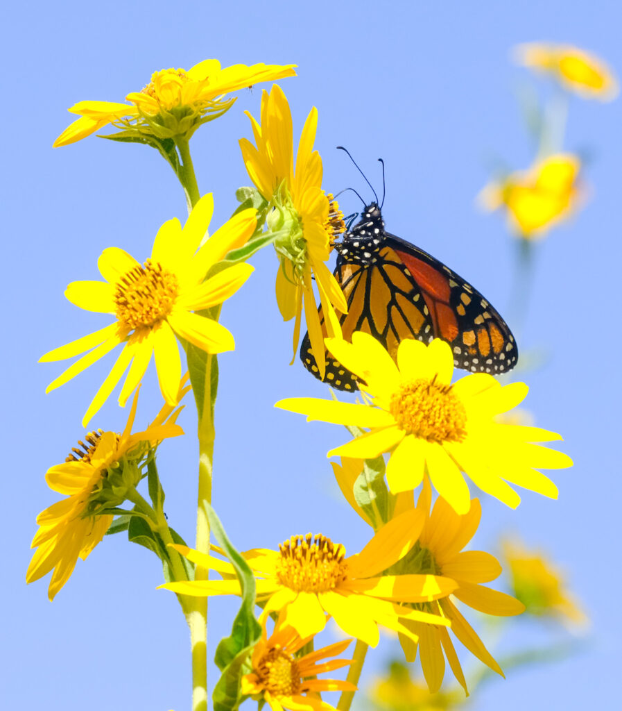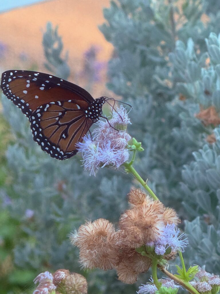 Our Heritage Farmstead Native Prairie Garden project recently received a Monarch Waystation certification. It took a lot of hard work by many volunteers in our chapter to get the milkweed established and fight off the invasive bindweed that has been choking out more and more of the native pollinator plants over the last few years. We’ve also had chickens and a donkey putting their own game trails in the flower beds. It’s been quite a journey for us to get this garden looking beautiful. I know that the picture is a queen butterfly but I couldn’t catch the monarch last time I volunteered. They move around a lot more than the queens.