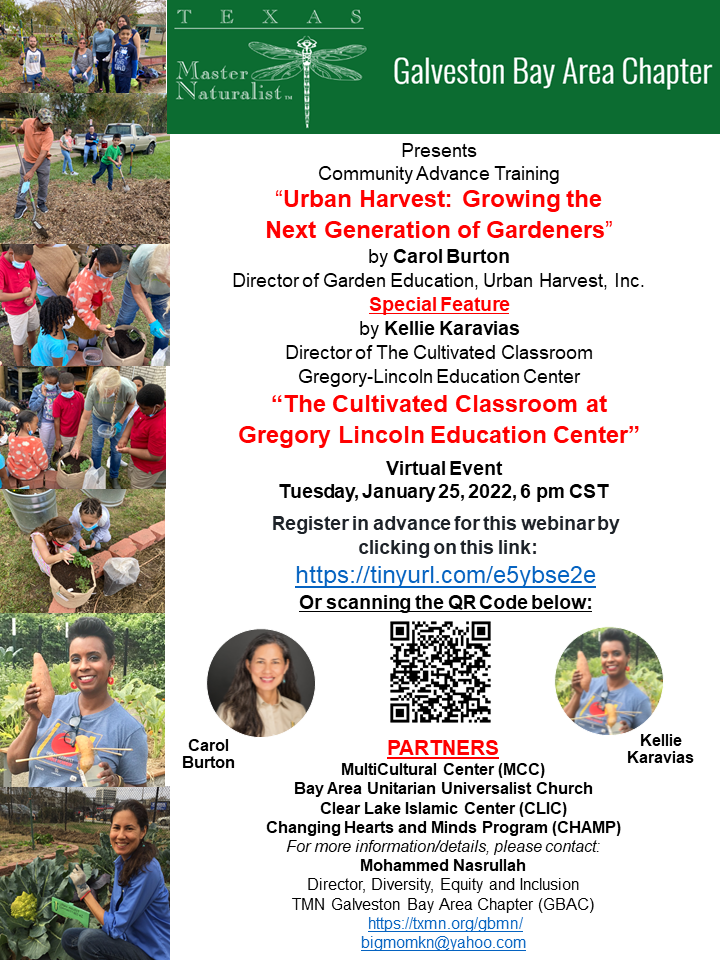 Join us for another Community AT: Urban Harvest: Growing the Next Generation of Gardeners presented by Carol Burton.