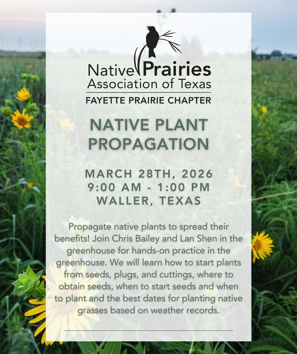 REGISTRATION REQUIRED: https:// texasprairie.org/event/fp- native-plant-propagation- march2026/