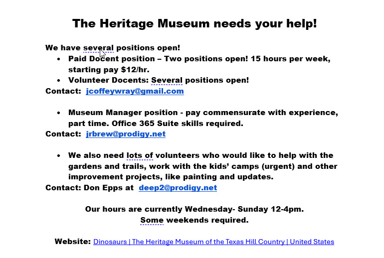 11/21/2025 From our President Sue Sommer: Greetings Fellow Master Naturalists! Remember, our meetings are temporarily happening at Mammen Family Public Library while Tye Preston undergoes renovations. Address: 131 Bulverde Crossing, Bulverde. Presentations start at 5:45 as usual, but if you would like to come early to socialize, we will be set up by 5:30. I hope to see everyone there! Sign up to bring snacks: Lindheimer Master Naturalists: Lindheimer Master Naturalist Chapter Meeting Snacks