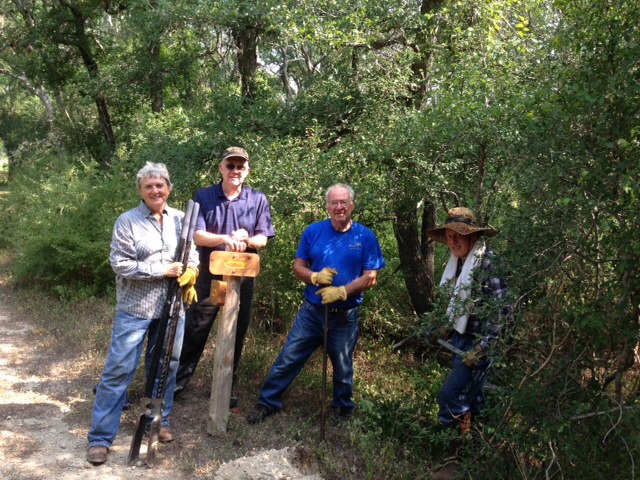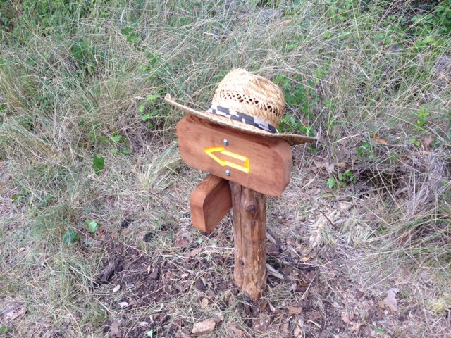 We had to set some arrow direction post today and it was a major effort in the heat. There were only three post to set but it was was like hard rock mining to dig the holes. We started at eight thirty quit shortly after eleven, nearly an hour per hole. You don’t know what you missed so I’m including some pictures.