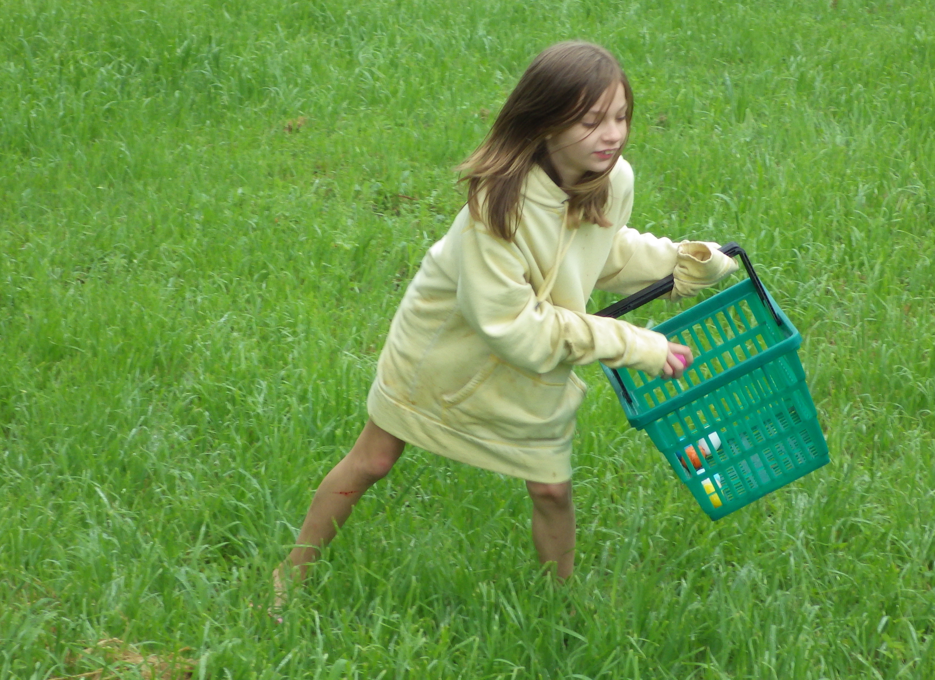 At 3:00 the kid’s egg hunt began. The youngest group was allowed a few minutes head start, but when the older kids were released it was a stampede down the hill at break neck speed. When the last egg was dropped in a basket, the eggs were counted and awards were given to those with the most eggs.