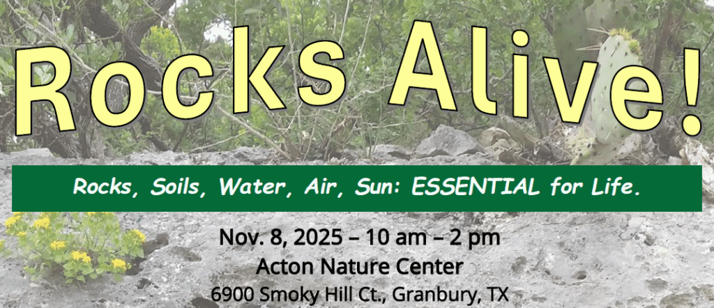 Monthly Bird Walks. 1st Saturday every month, 7-10 AM at Acton Nature Center, 6900 Smoky Hill Court, Granbury, TX. For everyone, from casual bird interest to seasoned birders. This is a citizen science monthly bird count recorded in eBird. Walk starts in the parking lot and goes to the bird blind and along trails from there. Recommended: Binoculars, camera, water, hiking shoes, and clothing suitable for the weather.