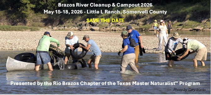 The Ninth Annual Brazos River Cleanup and Campout at Little L Ranch will be May 15-18, 2026. There will be four days of opportunities for advanced training and volunteer time while cleansing our chapter’s namesake (Rio Brazos) of tires and trash.
