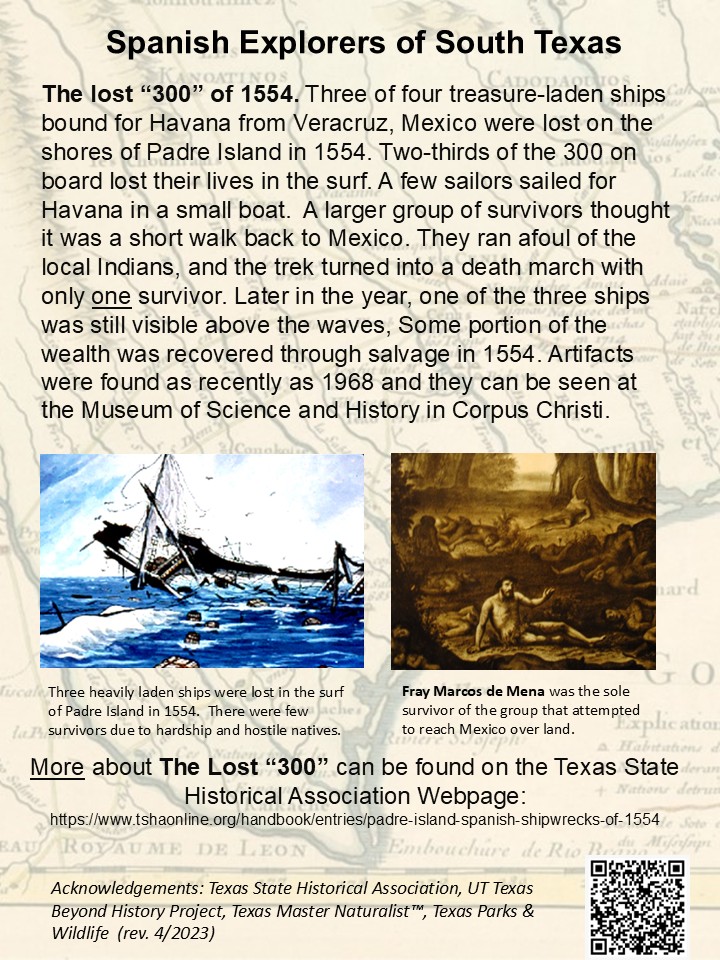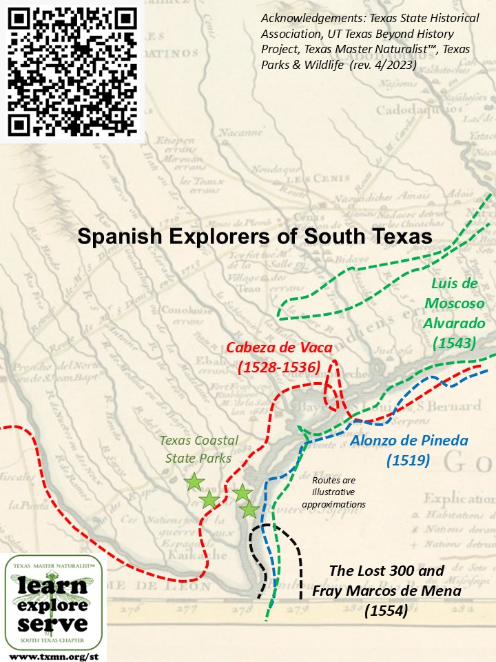 Included are a number of interesting summaries, guides, resources, and figures regarding the history of the Spanish Exploration of South Texas. More information (and more links to sources) can also be found on this page
