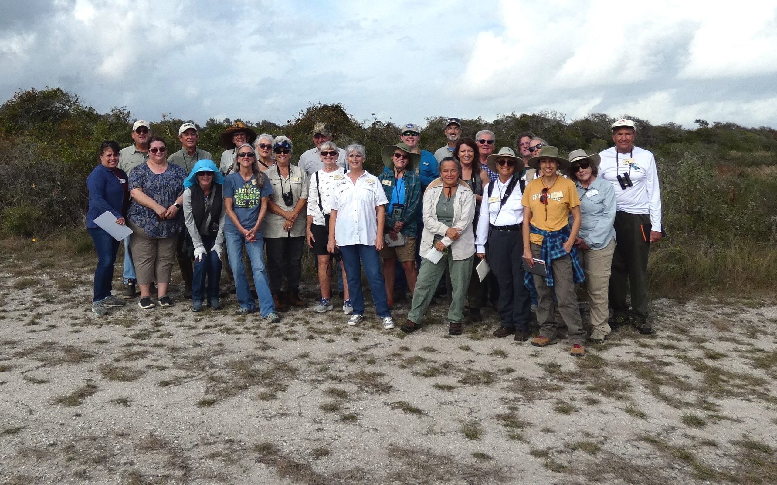 What about the training and service requirements for membership? Details are found throughout our website but here is the summary. Certification as a Texas Master Naturalist requires 40 hours of Chapter Initial Training, 40 hours of approved volunteer service, and 8 hours of approved Advanced Training. The cost of training is presently $195 and includes a Curriculum reference textbook, two years of dues, and the King Ranch Tour fee. After that, dues are $25/year. Members who accomplish 40 hours of service and 8 hours of advanced training are recertified each year and distinguished with a collectible annual service pin. Our developing training schedule is here, 2025 Initial Training Overview.